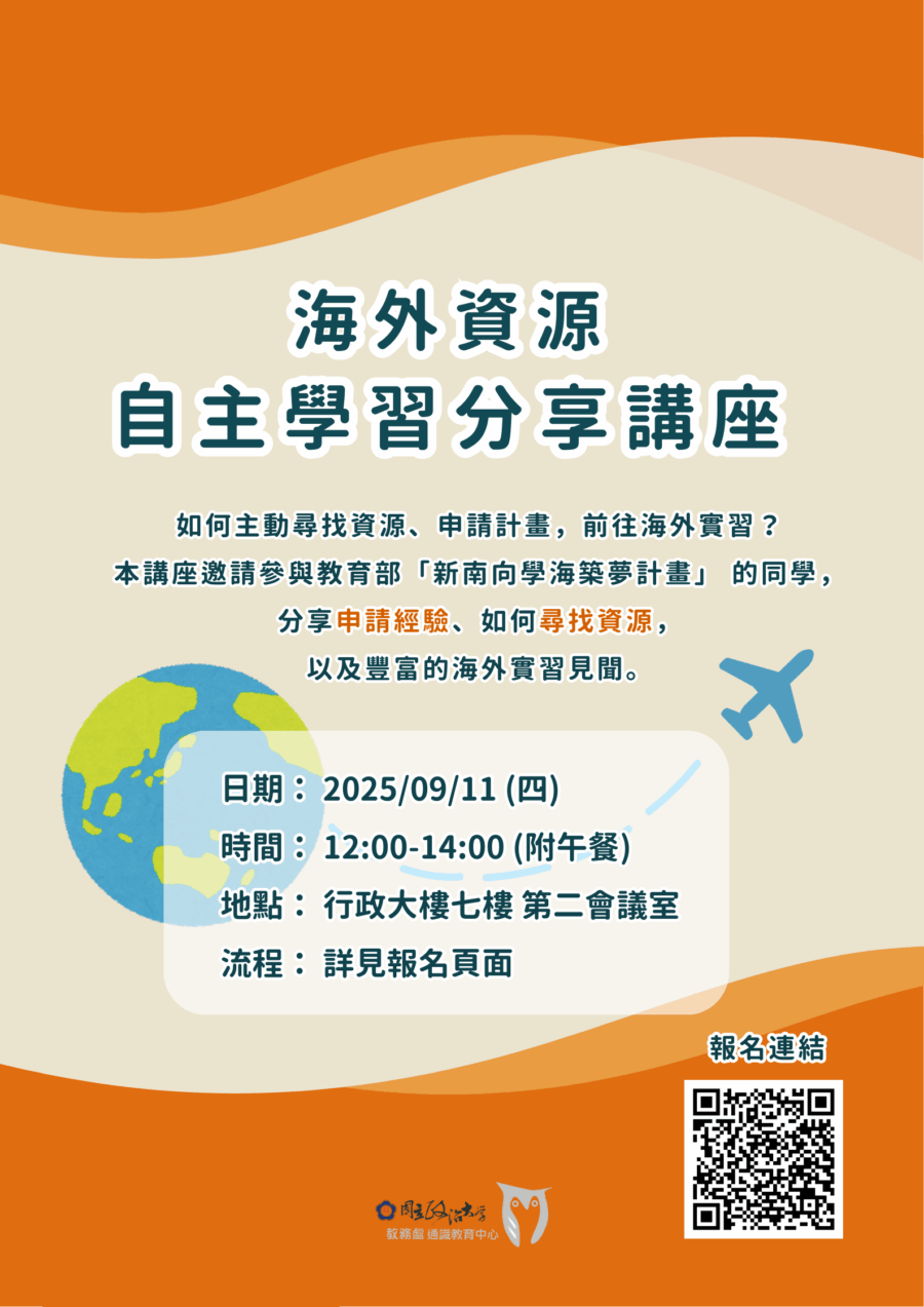 歡迎有志申請國外實習計畫的同學把握機會,前來聆聽!