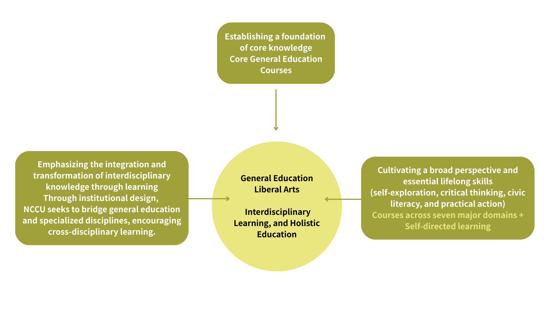 National Chengchi University (NCCU) positions general education as a form of liberal, broad-based, and holistic education. It is guided by three main goals: